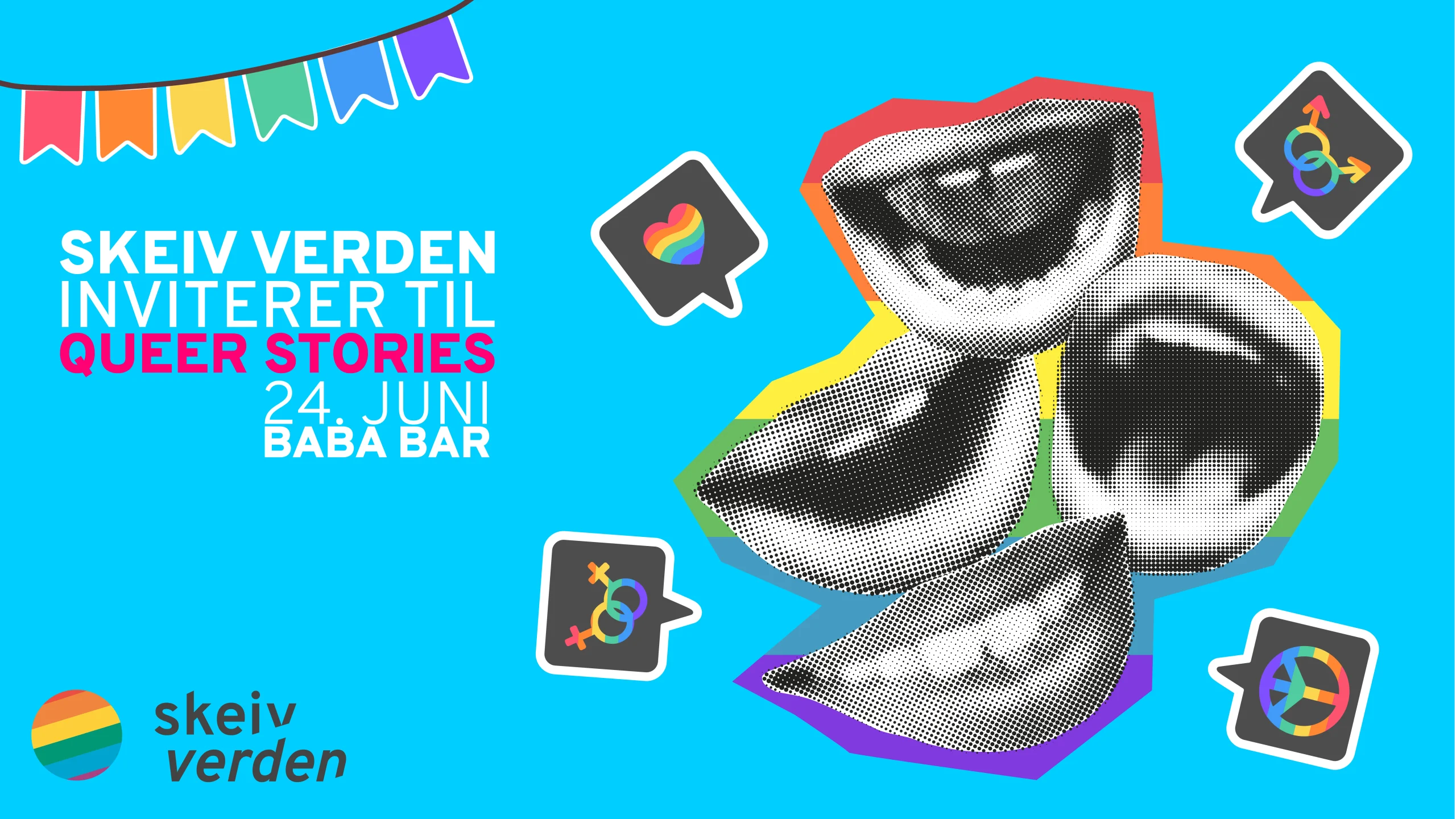 Skeiv Verden Oslo og Viken ønsker å invitere alle til Skeive historier! Skeive historier blir en Skeiv Verden Pride tradisjon og vi er så glade for å bringe dette arrangementet til Pride Hus igjen! Det er et åpen-mikrofon konsept hvor du har mulighet til å dele erfaringer og historier om ditt skeive liv i et trygg rom hvor vi kan finne støtte i hverandre. Vi ønsker å skape en plass hvor vi kan være oss selv, styrke og inspirere hverandre enten ved å dele egne historier eller ved å lytte.